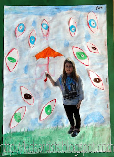 Show some of Miró's artwork. What do you see: bright colors, eyes, shapes outlined in black, divided surfases, stars. Talk about the difference between geometric and organic shapes. Talk about lines: straight, angular, rounded. What do you see in Miró's artwork?